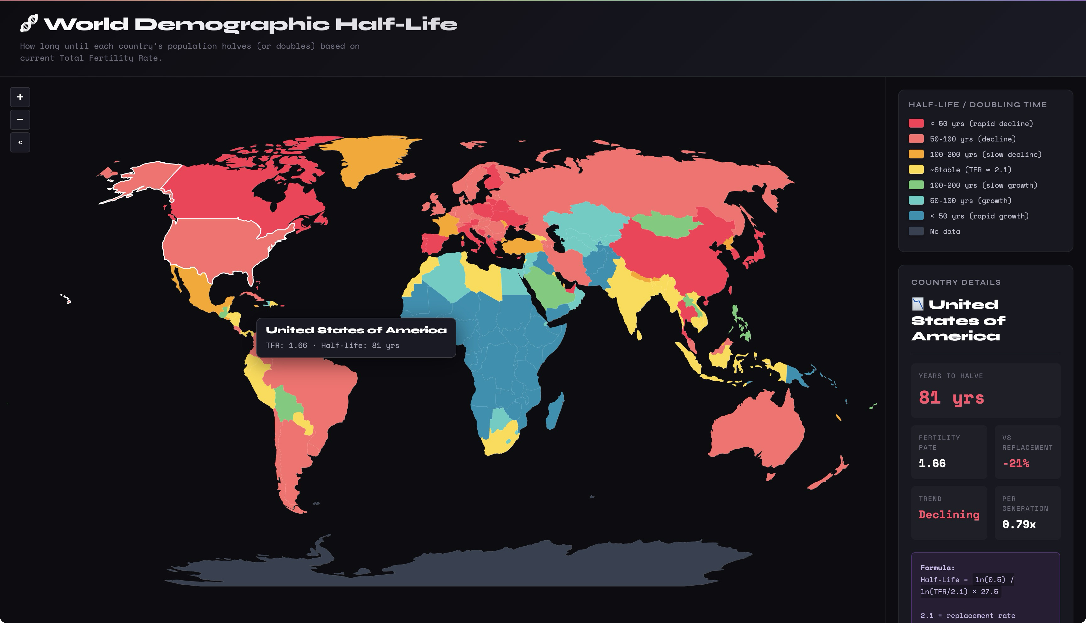 World Demographic Half-Life Map